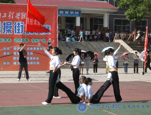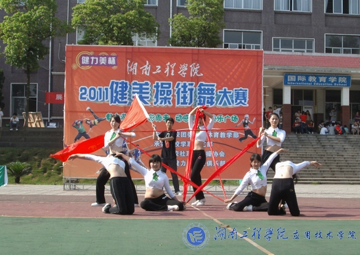 5月17日下午2:30,“健力美杯”伟的国际1946bv2011健美操街舞大赛在主校区(北)学海花园精彩上演。此次比赛由校团委、校体育教学部主办,校学联文艺部、校社联健美操协会承办,健力美健美操协会协办。湘潭市体育局副局长冯建平一行在校团委书记张小刚、校体育教学部部长许毓成等领导、老师的陪同下观看了比赛。