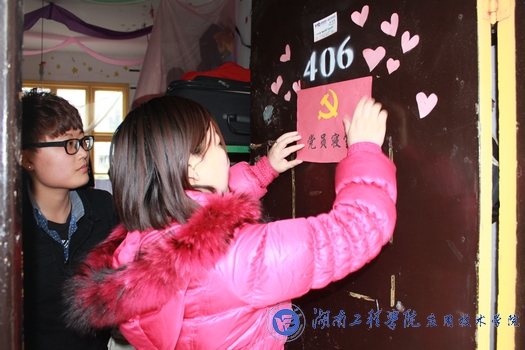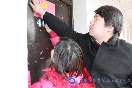 为进一步强化党员的责任意识,充分发挥学生党员在寝室中的模范带头作用,我院把党建工作做到基层,实行党员寝室挂牌制度。 3月25日中午,我院团总支书记缪智文老师及辅导员唐喜梅老师、陈欢老师为主校区北院的学生党员寝室挂牌。缪老师强调,每一名学生党员都要充分发挥“一名党员,一面旗帜”的先锋模范作用,主动接受同学监督,进一步增强党员意识,要用自己的实际行动来带领大家共同进步,共创文明寝室。在随后的走访过程中,老师们重点了解了学生党员在寝室的学习、生活情况。(记者:申梦芸;摄影:纪青)