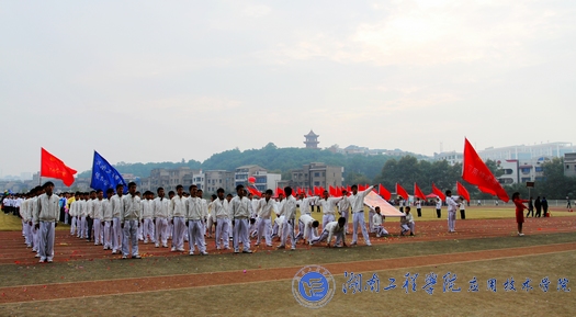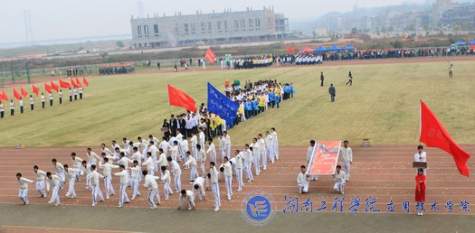 各学院的开幕式表演结束之后,校运会组委会主任、学校副校长刘国繁致开幕词。他首先代表学校对所有工作人员表示感谢,对校运会的顺利召开表示热烈祝贺。他还说道:“体育表现出了一种极强的毅力与斗志,带给了我们一种精神力量,因此,我希望运动员们能够带着这种精神力量奋力拼搏、赛出风采、赛出水平、创造佳绩。”接着,六人组健美操与活力四射的啦啦队的表演又掀起了开幕式的另一个高潮,他们的激情与活力进一步展现了湖工学子的运动风采。