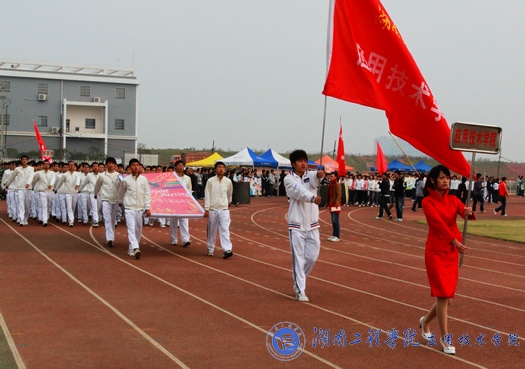 《运动员进行曲》激昂的旋律响起,各学院方阵队开始了各自精心准备的开幕式表演。“应院应院,活力无限,应院精英,敢闯敢拼”,在洪亮的口号声与欢呼声中,我院方阵队传承着往年的良好运动风貌,身着白色运动服,整齐划一、激情四射、斗志昂扬地走向主席台前,他们表演的标枪、跑步、接力、投铅球、扔铁饼、跨栏、跳远各种不同的运动姿势充分展现了我院运动健儿们的风采与活力。精彩的表演与铿锵有力的口号声让在场的人无不为之鼓掌,顿时欢呼声与呐喊声响彻全场。团总支书记缪智文老师也表示对我院此次方阵队的出场表现非常满意,并希望我院能够在团总支、学生会各部门以及运动员一如既往的奋战下再创辉煌,实现“保二争一”的目标。