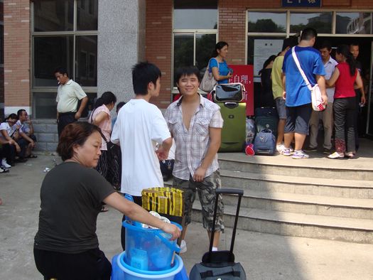 记者随着一新生经历了报到流程,来到了新生公寓前,出现在我们眼前的是一些正在耐心等待着的家长们,那么他们的孩子呢?再往里走我们看到了志愿者们正领着新生们往相应的寝室走去。据了解,我院为了方便新生及早入住,已在新生到来之前就把所有的生活用品配送到了每间寝室,这样在一定程度上减轻了新生和家长们的负担。
