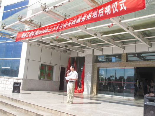 7月18日9:00,伟的国际1946bv2010年“三下乡”社会实践服务活动启动仪式在主校区(新)教学楼前坪隆重举行,学校副校长宁立伟、校团委书记张小刚及指导老师,全校5支社会实践服务团队110余名志愿者参加了启动仪式。