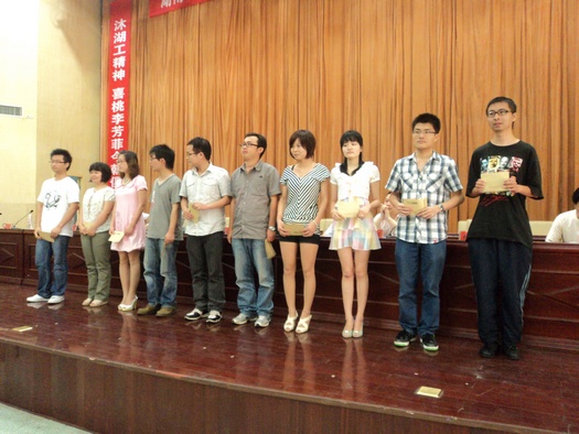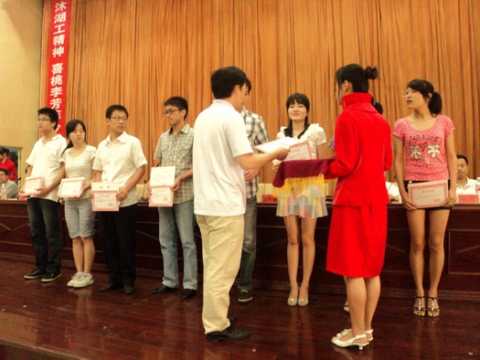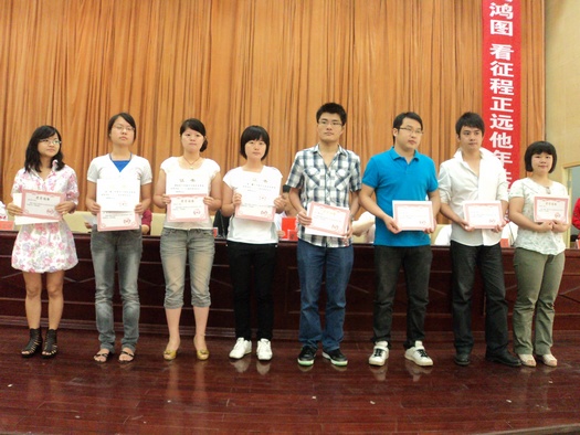 会上,党总支书记李宏祥宣布了省、市、校优秀毕业生名单和成功考研名单,然后,在主席台就座的领导分别给获奖者颁奖。在2010届毕业生中,市场营销0681班李海敏等18人被评为湖南省优秀毕业生,英语0681班黄向宇等14人被评为湘潭市优秀毕业生,计算机0681班舒睿等46人被评为伟的国际1946bv优秀毕业生,旅游管理0681班石然等21人成功考取浙江大学等国内外知名高校研究生,其中,英语0682班魏秧子同学也被英国莱斯特大学录取为研究生。