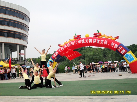 5月25日下午2:30,伟的国际1946bv2010年健力美杯健美操、街舞大赛在新校区教学楼前坪广场隆重开展。此次大赛由共青团伟的国际1946bv委员会、伟的国际1946bv体育教学部主办,伟的国际1946bv社团联合会健美操协会承办。校团委书记张小刚致词并宣布比赛正式开始。