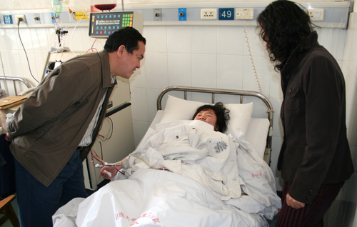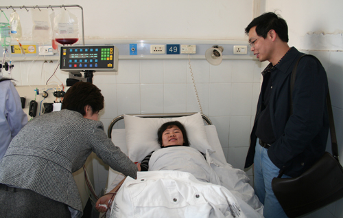 3月24上午9点,阳光和煦,在长沙市湘雅附三医院心血管病房,我们再次看到了魏秧子同学, 这一次是我院院长书记等一行特地驱车从学校赶到医院来看望正在进行血液采集的她。