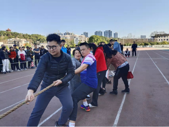 3月8日下午,趣味运动会火热开赛。我院教职工参加了“旱地龙舟”“一锤定音”“集体跳绳”“财源滚滚”“众人拔河”5个项目,特别是众人拔河项目,我院刘杰副院长带领男女十名运动员力拔千钧,连战连胜,喜获一等奖。