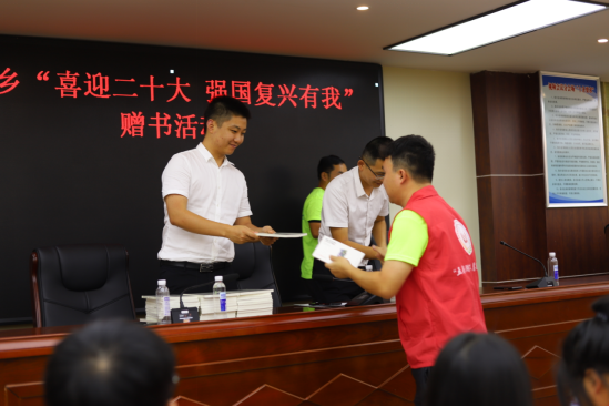 七月时节好,读书正当时。在会议的最后,彭龙主持开展“喜迎二十大,强国复兴有我”赠书活动,将书籍赠予团队成员。