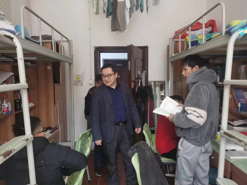 一走进学生宿舍,院领导就与返校学生进行亲切交谈,详细询问学生生活、学习、就业和新学期各项工作准备情况。张何每到一间宿舍,就详细询问返校学子假期过的怎么样,新学期学业考试准备的如何,生活中存在什么样的困难。他说,同学们都过了一个幸福愉快的春节,因疫情原因,上学期的学业考试推迟到本学期进行,大家要尽快调整状态,投入到新学期紧张的学习、考试工作中。他还不断叮嘱同学们要注意用电、交通和人身安全,强化安全意识,增强自我保护意识,加强文明宿舍建设,常通风,保持良好的卫生习惯。黎娅认真查看每一间学生宿舍,详细了解同学们学习和就业情况,询问班级学生返校了多少,还有多少没有返校。在毕业班学生宿舍,详细了解学生考研、考公及工作落实情况,为考研、考公的同学们加油鼓劲,祝愿大家心想事成。