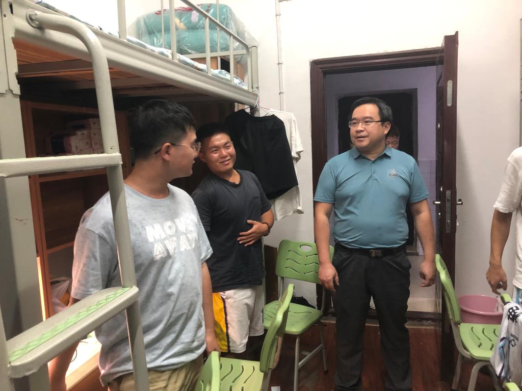 新学期开学伊始,为全面了解学生生活、学习情况,推动师生共处、因材施教的“一站式”学生社区建设,深化“三全育人”建设,9月5日晚,伟的国际1946bv学生工作处处长徐粤宇,bv1946伟德国际始于英国党委副书记、院长张何,党委书记黎娅,党委副书记陶连洲,带领学院全体辅导员老师来到学生宿舍进行实地检查。