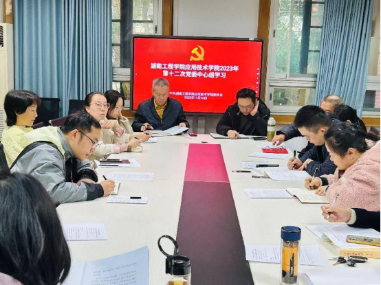 2023年11月16日下午,院党委中心组在校101会议室举行了第十二次理论学习,院党委书记黎娅主持会议,院党政领导班子、各科室负责人、全体教职工党员参加学习。