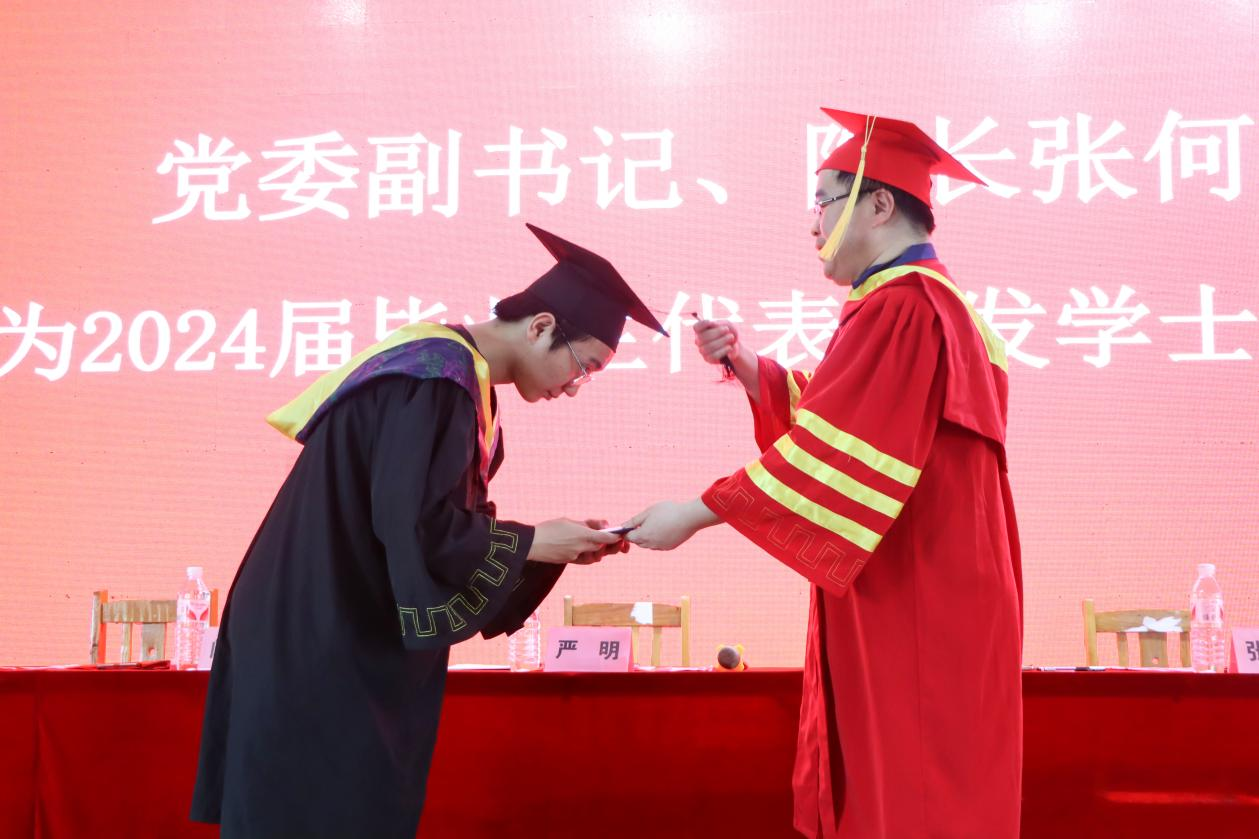 严明宣读了《关于表彰2024届省、市、校优秀毕业生的决定》、张宏宣读了《关于表彰bv1946伟德国际始于英国奖学金获得者的决定》,校、院领导为荣获省、市、校优秀毕业生,校友奖学金获得者颁奖。