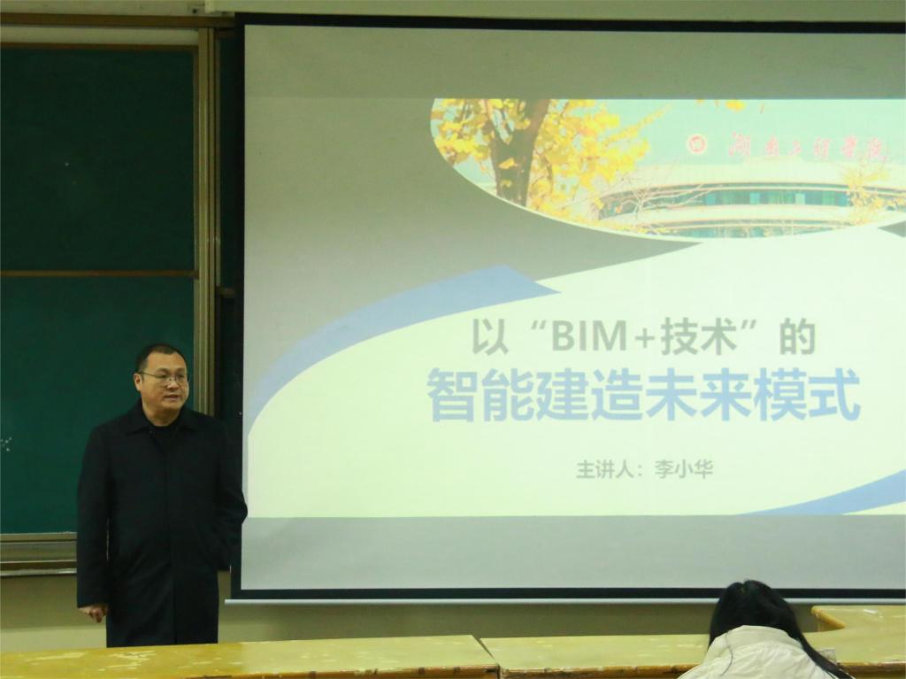 为进一步丰富学院学术氛围,我院“卓越大讲堂之院长论坛”系列讲座第五场,于12月24日下午在第一教学楼213教室开讲。建筑工程学院院长、湖南工程学院绿色建筑与建筑节能研究所所长李小华教授受邀,以“BIM+技术”的智能建造未来模式为题作报告。我院长张何与副院长陈晓莅临现场,与同学们共同聆听这场精彩的报告。