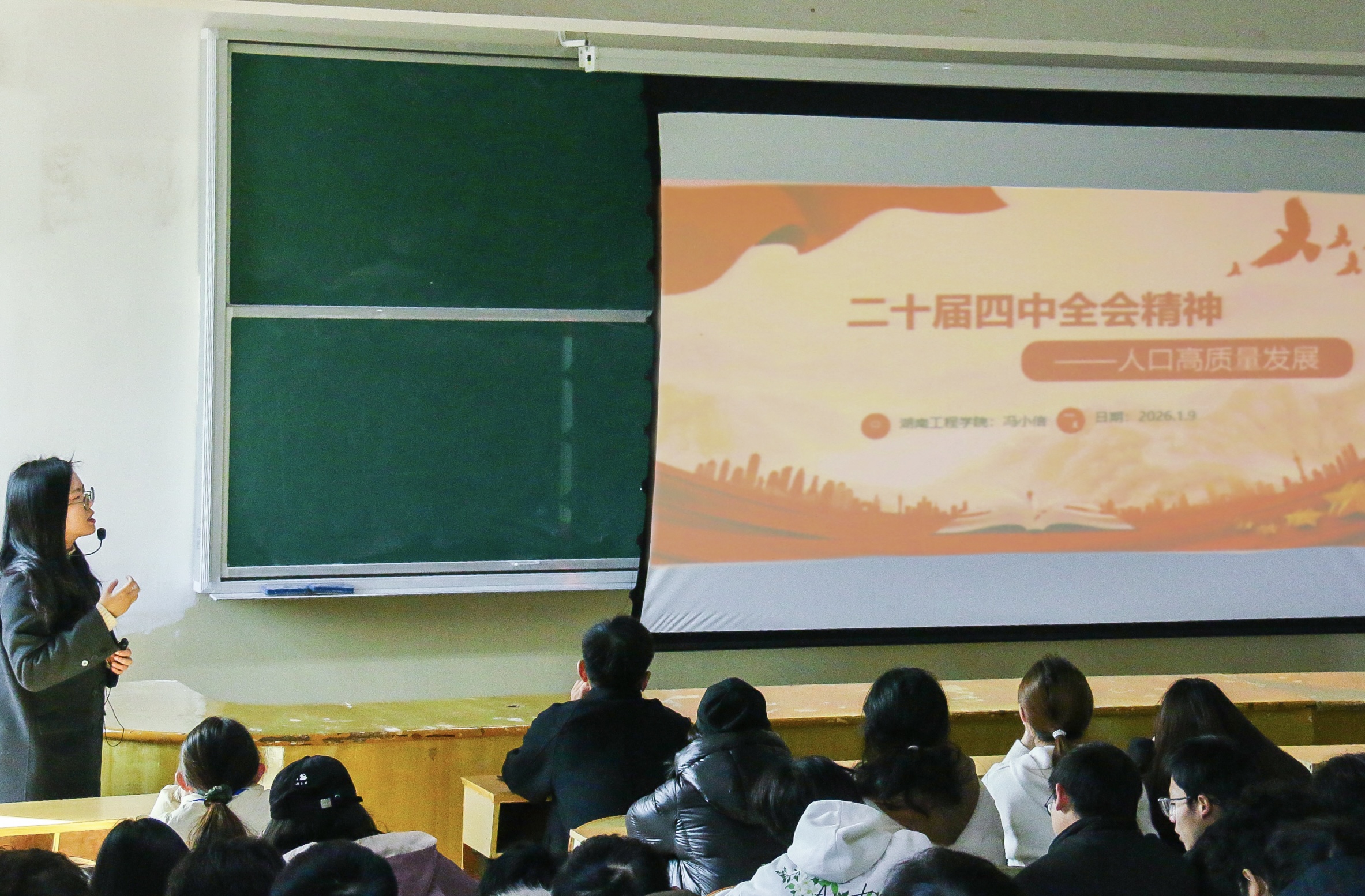 为持续推动党的二十届四中全会精神走深走实,1月9日,我院在第一教学楼213教室举办专题学习讲座。主讲人马克思主义学院冯小倍老师以“人口高质量发展”为题,深度解码四中全会对人口发展的战略部署。学院分团委书记张琛与百余名师生共同聆听。